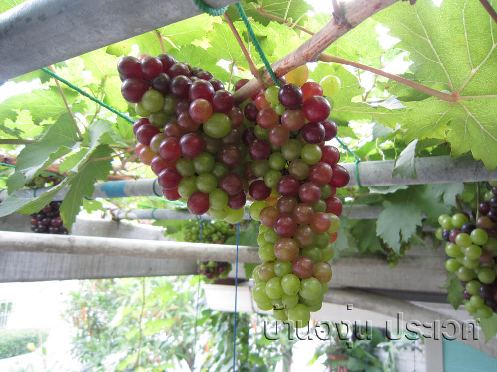ผลองุ่นเริ่มเปลี่ยนสี ช่วงนี้พวงองุ่นมีหลายสีสวยดี |