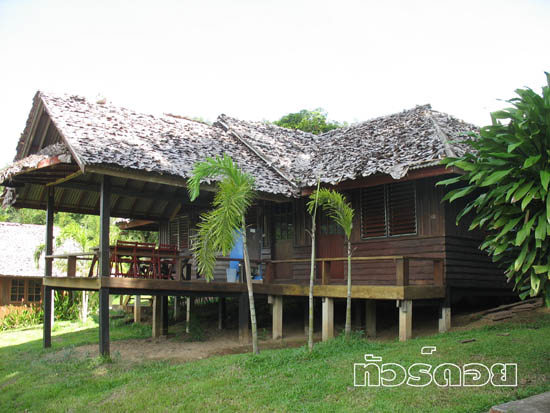 บ้านใหญ่ มีระเบียงนั่งเล่น หลังคามุงกระเบื้องแล้วมุงทับด้วยตองตึงให้เข้าบรรยากาศของแม่ฮ่องอสอน
